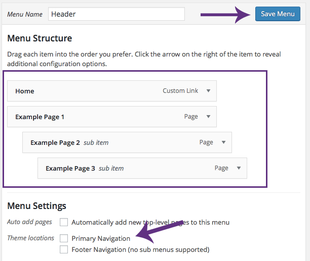 - Once you’re satisfied with your menu’s settings and order, click “Save Menu”.
