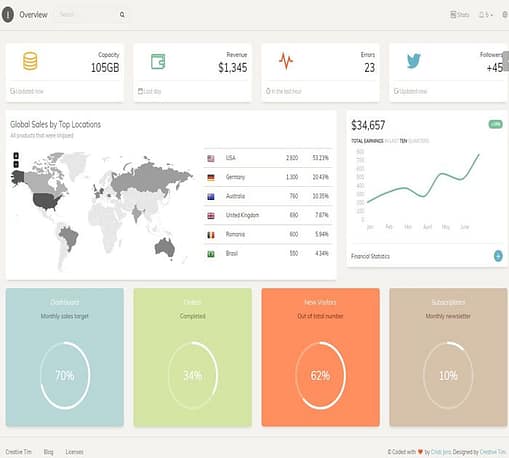 What do I mean by “elements”? Well, more or less everything you can find in an admin dashboard: charts, tables, user profiles, buttons, fonts, forms, calendars, notifications, and a lot lot more.