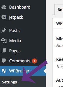 - If you haven’t already, log in to your WordPress dashboard, and select “WPBruiser”>”Settings” from the left side-bar menu.