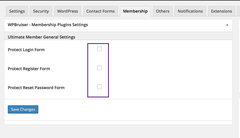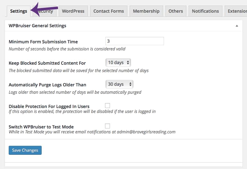(click to enlarge) Once you start making changes to your settings, don’t forget to click “Save Changes” at the bottom of every screen. While we’ve had success using WPBruiser on our sites, it’s definitely changed a lot since we installed it as Goodbye CAPTCHA. If you have tips on how you’ve used it successfully on your site, please tell us in the comments!