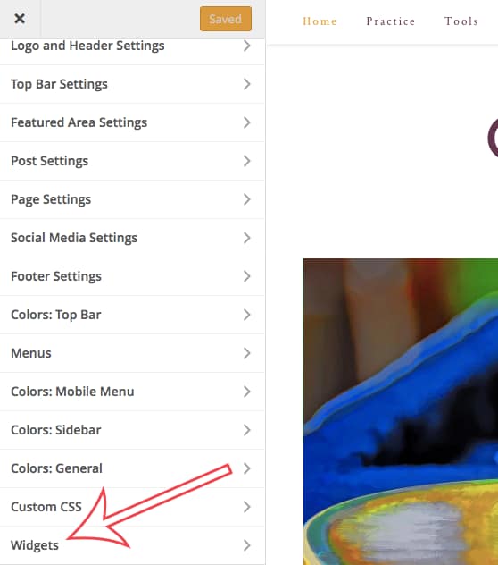 (click to enlarge) - From the customizer screen, select the option for “Widgets”.