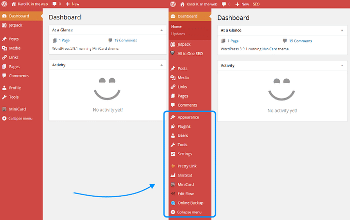 For instance, one of the most popular plugins out there – Jetpack – notoriously occupies the space right beneath the Dashboard.