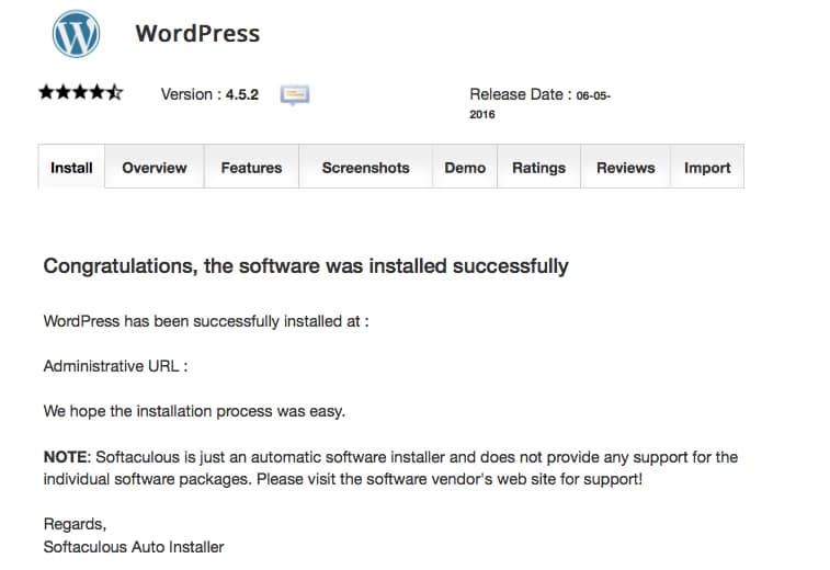(click to enlarge) - Confirm that your new site is active by logging in to your WordPress dashboard (usually found at yourdomain.com/wp-admin) and that’s it!