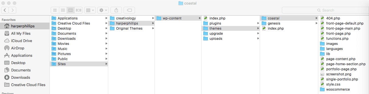 Creating a local file structure will allow you to edit style.css and other theme files locally before those changes are pushed to a live site. This one really is as easy as it seems! I created a folder named sites on your computer, you’ll need to create one too. The file structure I use within it is: