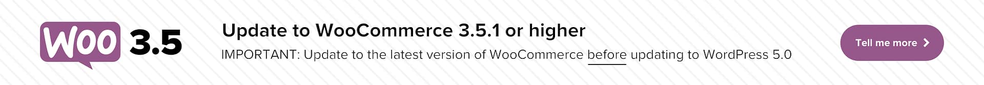 The “Tell me more” link doesn’t give any helpful detail on why this is important. This is especially unnerving as WooCommerce, of all the important software projects in WordPress, tends to make breaking changes, making updating WooCommerce relatively scary on its own.