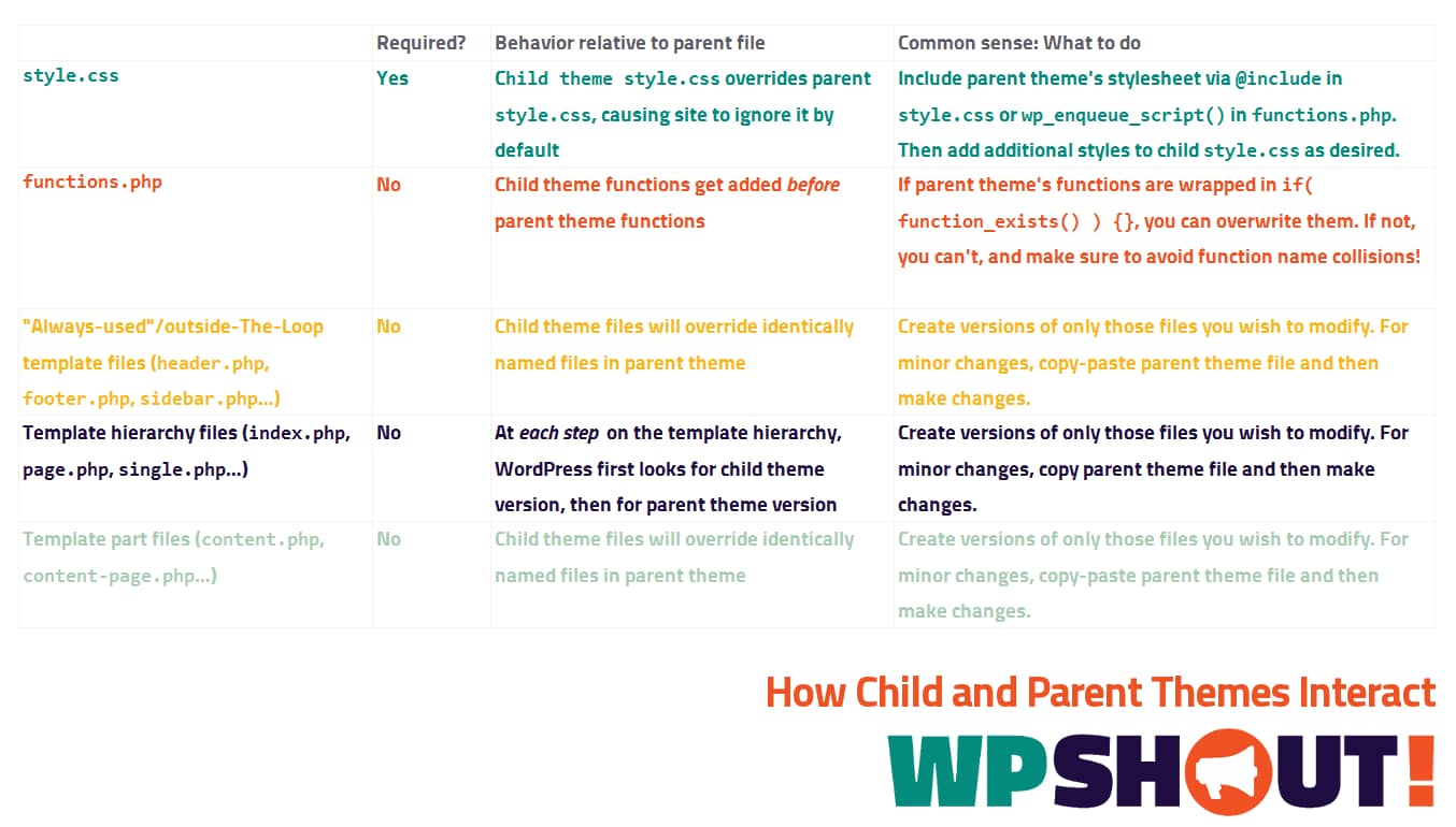 Here’s a diagram that breaks that question down for each piece of a child theme: