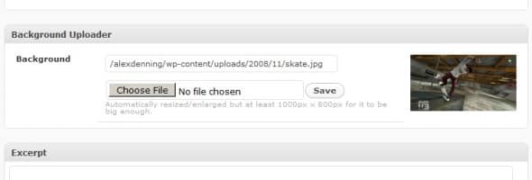tag. Save the file, upload it and create a new post. You’ve now got an uploader which will save images into the custom field ‘bg’.