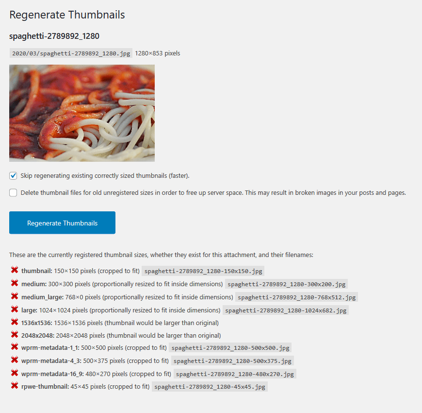 If you installed any demo content for your site, you might be able to find and reuse images from the demo, assuming you didn’t replace them with your own ones. In my case, I used GeneratePress’ Tasty demo, Elementor’s Restaurant Homepage and WordPress’ Theme Unit Test Data, so could retrieve the images from them.